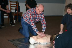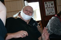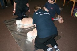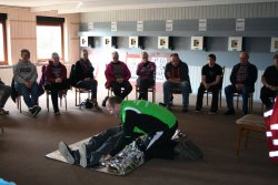 die reichlich Brötchen zu schmieren hatte. Nach der Mittagspause ging es dann weiter mit "Verletzungen" Wo es jetzt um das Verbinden ging.