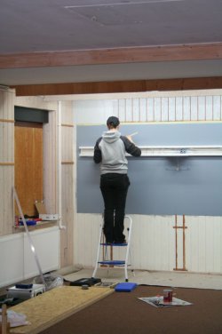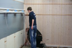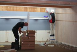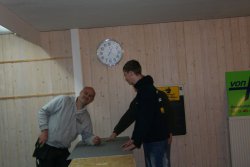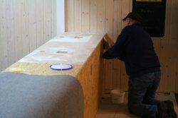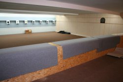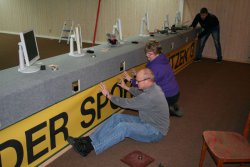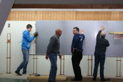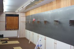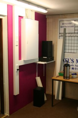 Gleichzeitig wurde die Chance genutzt den Schießstand zu renovieren. Die Wände haben etwas Farbe bekommen und der Bereich der Rückwand, in dem die Trefferanzeigen montiert sind, wurde auf den neusten Stand der Sicherheit gebracht. Mit einer 2mm Stahlplatte wurde der Bereich um die Trefferanzeigen absolut Rückprall sicher ausgestattet. Auch die Schützentische mussten der Renovierung weichen. An dieser Stelle wurde ein Tresen errichtet, der nicht nur dem Schützen etwas mehr Platz bietet, sondern auch gleichzeitig die Monitore zur Trefferanzeige einen sicheren Stand. Auch kann der Monitor so bequem umgestellt werden, falls ein Linksschütze an den Stand kommt.