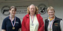Bei den Damen traten 3 Schützinnen an. Kristin Petersen wurde 1. mit sehr guten 371 Ringen und qualifizierte sich schon vorzeitig für München. Svenja Rohwer schoss 365 Ringe und wurde nur 4. Mit diesem Ergebnis muss sie noch um die Teilnahme zittern. Silke Holmer belegte den 10. Platz mit 328 Ringen. Somit wurde die Mannschaft Landesmeister.